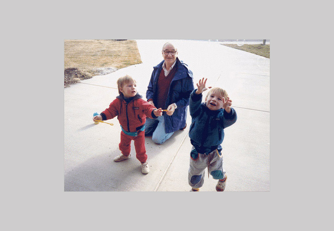 My identical grandkids chasing soap bubbles!