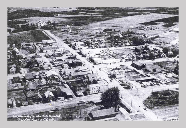 Aerial view of Mundare amidst the rural plains