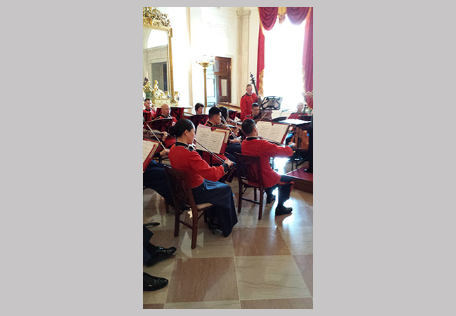Marine band playing at the ceremony and at the entrance of the president